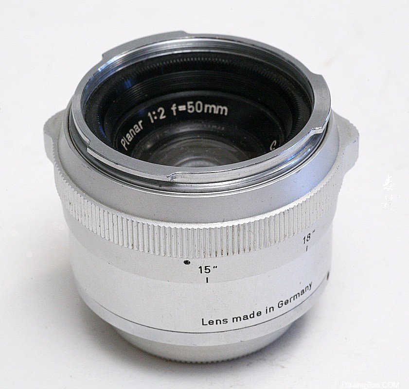 50/2 Planar是Contarex系统中最常见的普通镜头。最初以缎面格罗姆(chgrome)形式提供,后来以“闪电”(Blitz)功能以黑色完成,该功能可通过根据焦距改变光圈来实现闪光灯自动操作。