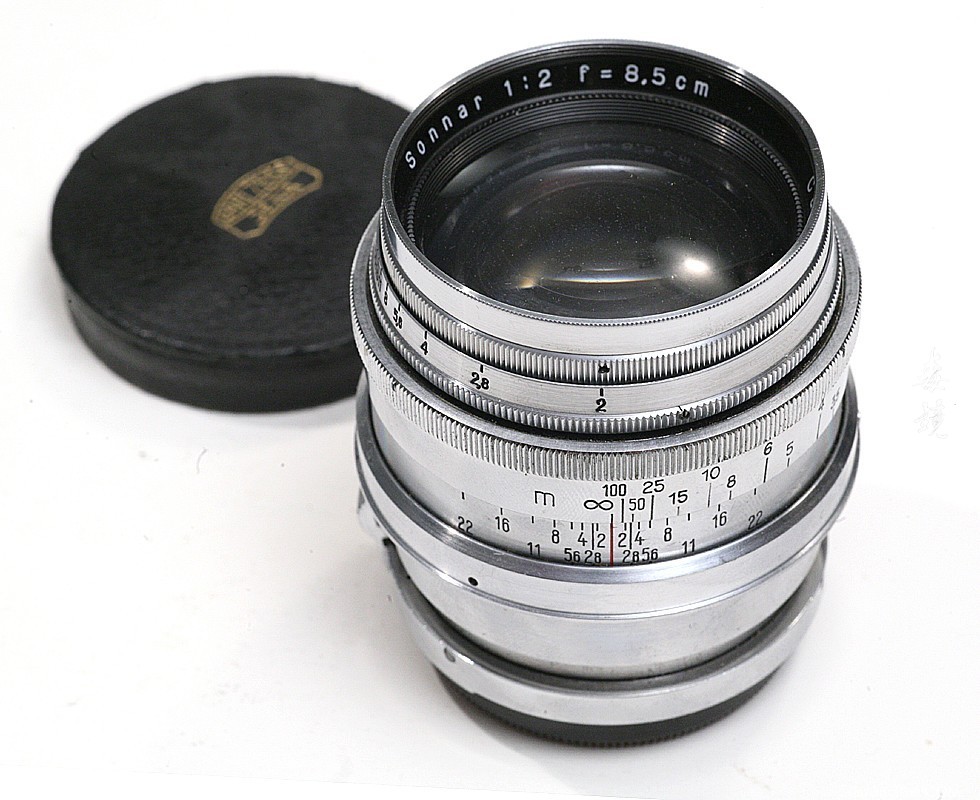 战前85/2 Sonnar黄铜制成,镀铬。此示例是针对欧洲市场的,因为聚焦标尺以米为单位。