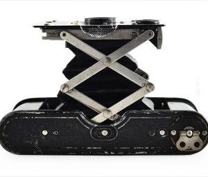 除了其非同寻常的设计,布朗尼威达很基础。单速快门的长矩形按钮可以在具有固定焦点和光圈的简单镜头下方的前面板上找到。要前进胶卷需要扭动右侧旋钮。摄像机两侧的两个滑动金属板用作皮带凸耳以及将摄像机前半部和后半部固定在一起的闩锁。红色窗口位于目镜下方的背面,用于简单的光学取景器。相机顶部和底部的两个弧形凹口设计为通过提供舒适的左手握持力来减少相机抖动。奇怪的是,Vecta没有三脚架插槽。