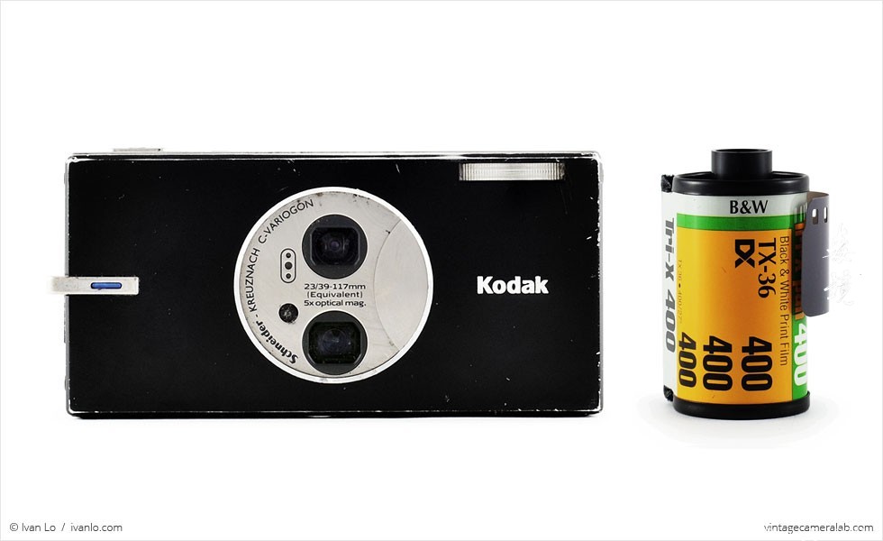如果您想知道为什么相机上的所有按钮都没有标记,那不是因为柯达在极简主义上太过分了,而是因为我的示例上的油漆随着时间的流逝而磨损了。在顶板上从左到右,第一个按钮用于自定义模式,下一个按钮激活视频模式,三个点亮的按钮中的最后一个在几种预设静止模式之间切换。接下来是带纹理的电源开关按钮,该按钮可缩回圆形金属盖以露出镜头,麦克风和指示灯。最后是长长的椭圆形快门按钮,可触发5百万像素传感器。