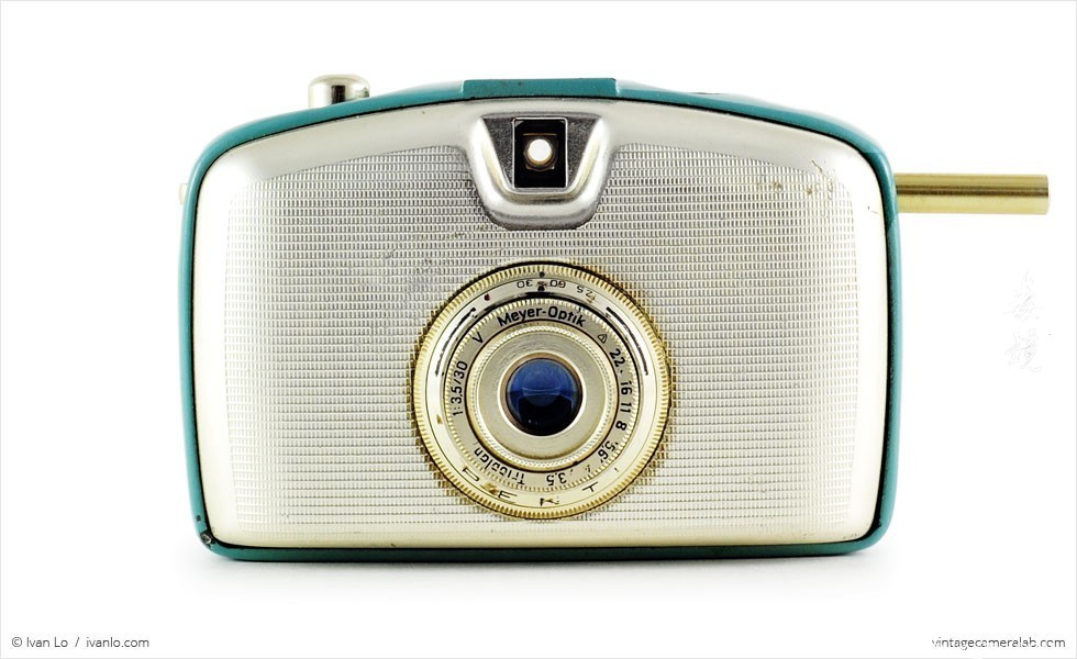 奔腾拥有一个Meyer Optik 30mm f/3.5 Trioplan镜头,内环用于调节焦距,另一个更大的光圈用于改变光圈。镜头筒上最外层的环选择四种快门速度(灯泡、1/30、1/60和1/125秒)中的一种,这些速度通过相机顶部带螺纹电缆释放插座的镀铬快门按钮触发。一旦快门启动,相机用户左手边的一根杆子就会弹出,伸出约两厘米。将杆推回相机,会使快门翘起,同时使胶卷前进。在相机的顶板上还有一个中间的冷靴 ,一个圆形的帧计数器和一个闪光同步插座。