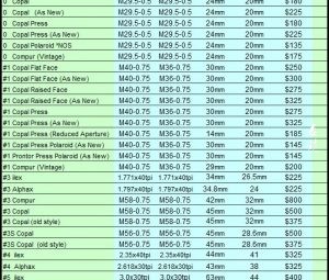 | 2a快门的官方规格为Tube 6 /II型,这是三种2号快门中唯一尺寸不同的 4a快门的官方规格为Tube10/II型 5号快门另有一种Tube 12/II型,前后距不同,开口尺寸不变 这里的Tube型号,应该是指快门中的螺纹管有一定的尺寸差异。 |