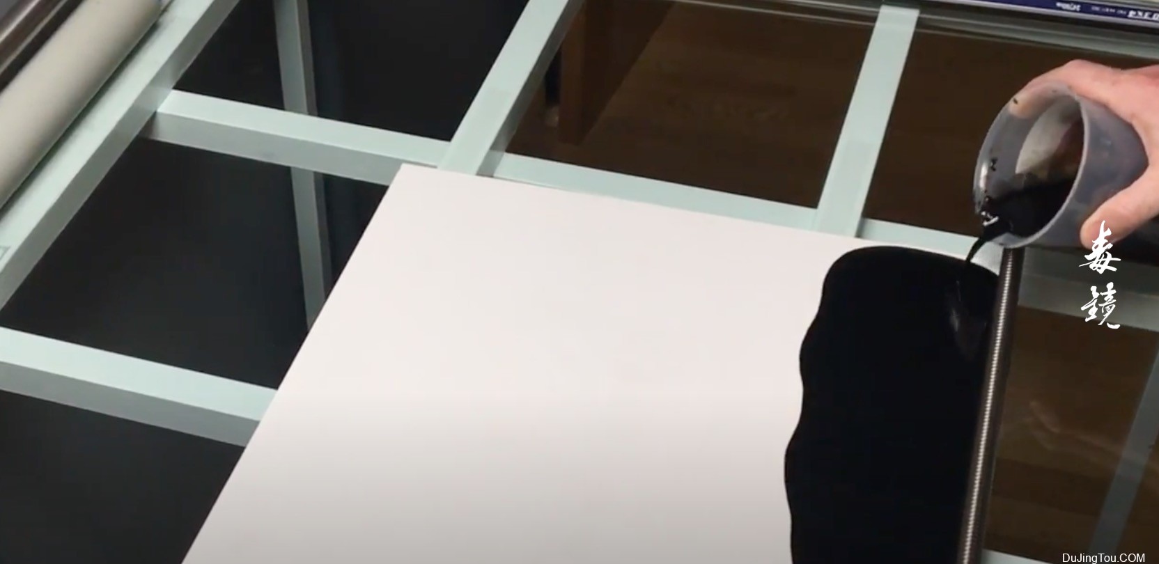 用RainX或任何类似产品涂覆玻璃会使表面疏水,这意味着它可以排斥水或我们的乳液。使用亲水涂层表面(例如Yupo)意味着乳液将希望保留在涂层表面而不是玻璃上。在视频中,我用涂布棒演示了这一点,尽管我个人不喜欢仅仅因为清理一件事而使用它们。我会使用梳子,因为它既快又容易清理,并且可以将明胶推向组织的确切位置。在两侧,我一直向上延伸到边缘,但在另一侧,我留了一个1厘米的间隙用于悬挂。