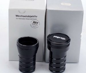 Colorplan镜头组件(右)和特殊的M42螺旋转接器(左)。如果将旋光镜调得太近,则镜头组件会从旋光镜上脱落,并与Poron一起掉落。
