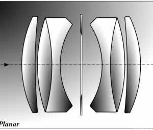 | Biotessar光学器件:左侧是被摄物体的前侧,右侧是相机侧。该组合物是Biotessar类型,分为3组,共6个元素。它在Tessar的基础上进行了改进,并大大增强了球差,像散和轴向色差的校正效果。与当时的Tessar相比,分辨率和外围图像质量有所提高,清晰度很高,并且与F2.8 / F2.9的亮度相当。它的特点是具有许多配合表面。 |