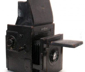 - 1908 型号有三个狭缝:一个,全宽,用于聚焦;约 1 ½” 的秒用于较慢的速度,窄缝用于较快的速度。速度范围为 1/20 – 1/1000。