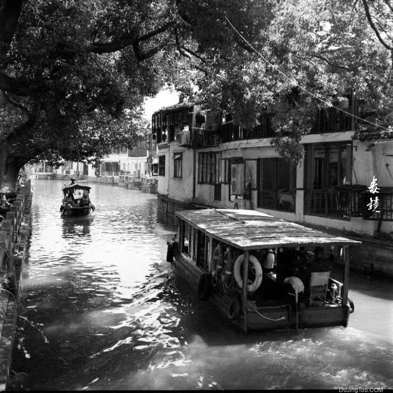 而在太浦河畔,我捕捉到了这条河流的宁静和生机。船只静静停泊在岸边,水面倒映着周围的建筑和树木,构成了一幅宛如画卷的景象。黑白胶片的运用使得整个画面更加抽象和梦幻,给人一种超现实的感觉。我希望通过这些作品,让观者感受到这座城市的独特之处,感受到历史与现代的交融。
