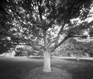因为针孔的边缘会随着失光变黑,而且由于胶片是一个平面,胶片的角落的成像也会呈现放射状劣化。针孔的氛围其实也是由这两个缺点造成的,所以有的针孔相机在设计120宽幅的结构的时候,会把焦平面设计成为以针孔为中心点的圆弧状,这样将会大幅改善成像质量。