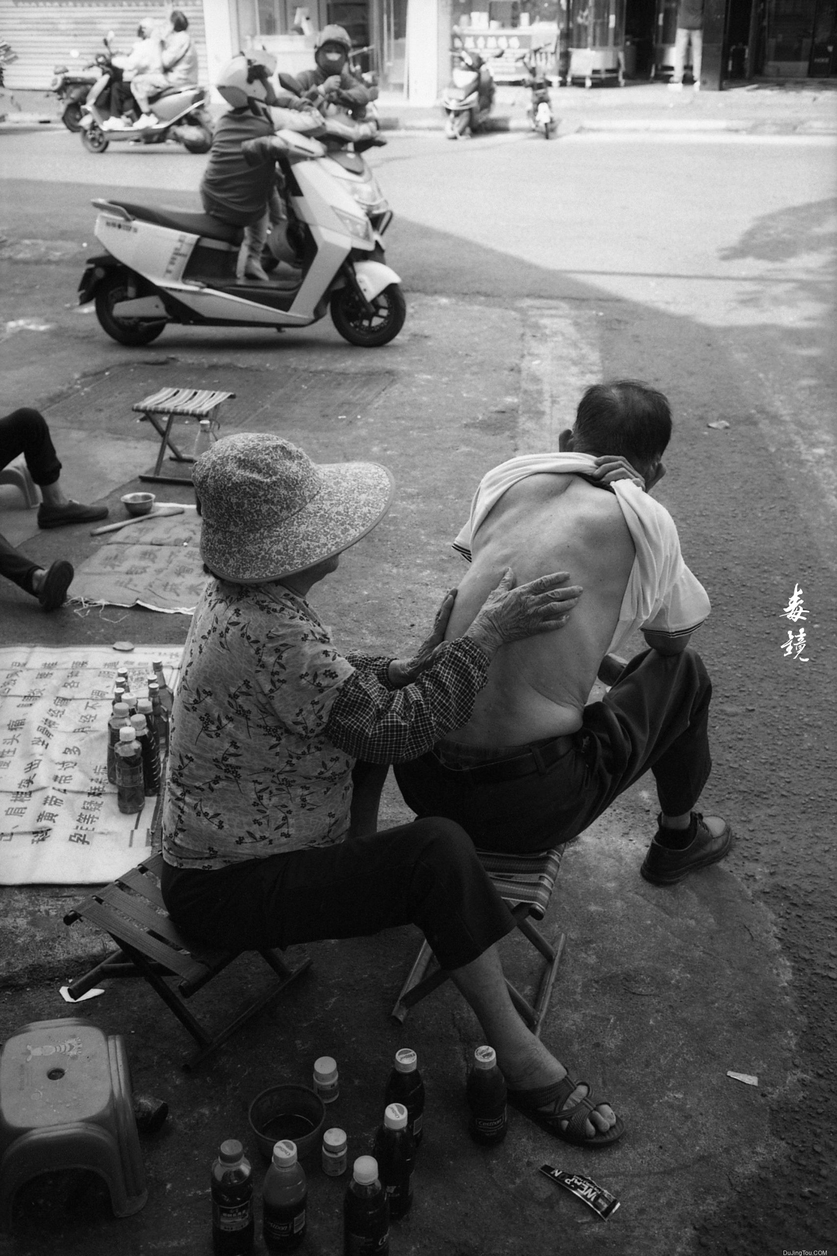 胶片摄影爱好者进安一直坚持使用传统的胶片相机拍摄作品。这几幅黑白摄影作品使用的是徕卡M4机身,搭配徕卡 Summaron 35mm f/2.8和135mm f/4.5 等不同焦距的镜头,拍摄胶片则是柯达TRI-X 5222黑白胶卷。