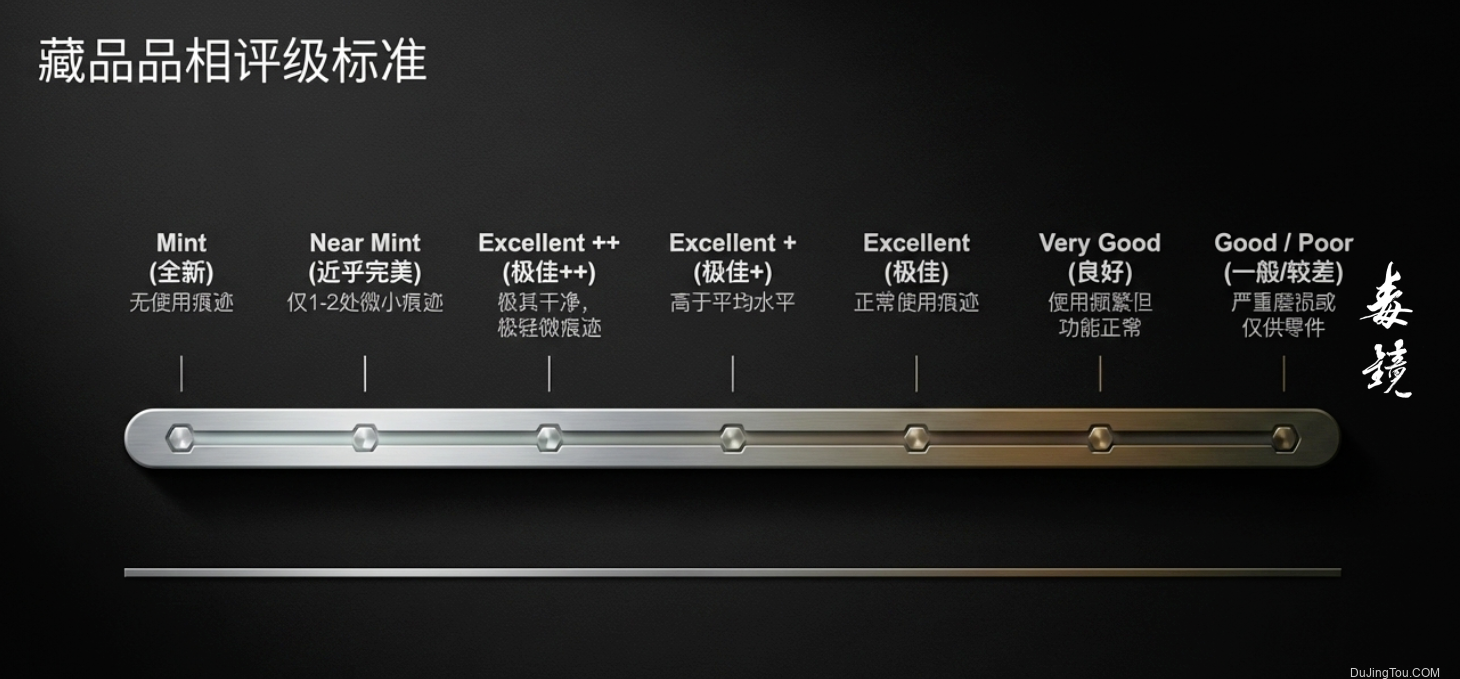 • 品相与价格的相关性:在同型号中,Mint5分) 等级相比于 Excellent3分) 通常有 50%-100% 的价格溢价