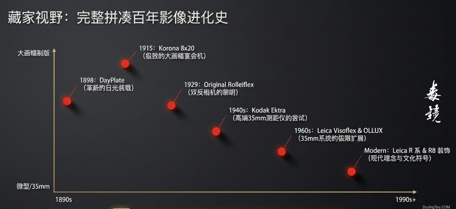 大画幅相机 (Large Format)4×5, 8×10, 8×20英寸Deardorff 8×10、Korona全景座机、未知名4×5座机数量较少,多为木制座机(View Camera)或外拍机(Field Camera),具极高收藏价值。