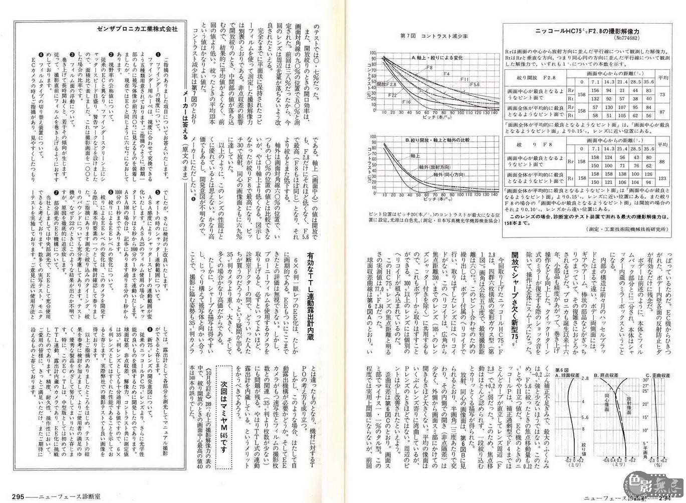 勃朗尼卡GS-1使用的镜头叫做PG系列,焦距范围50~250mm。