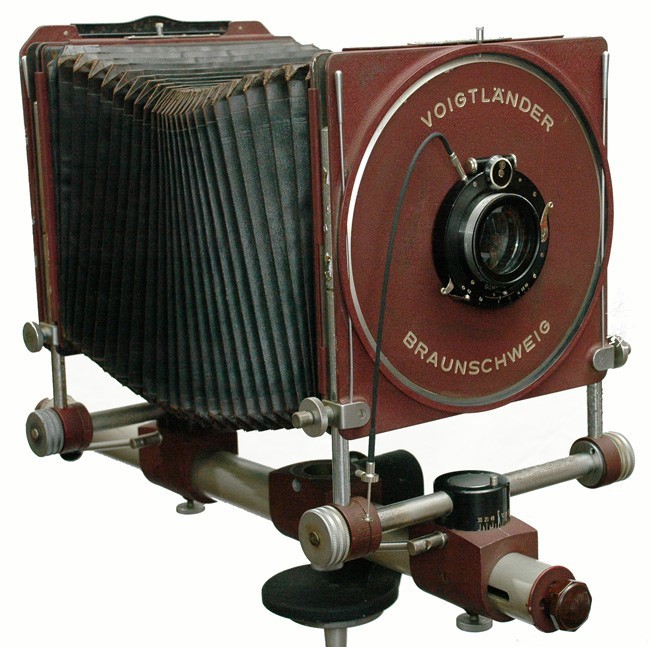 Fall and rise is provided on the vertical rods supporting the lens and film panels.