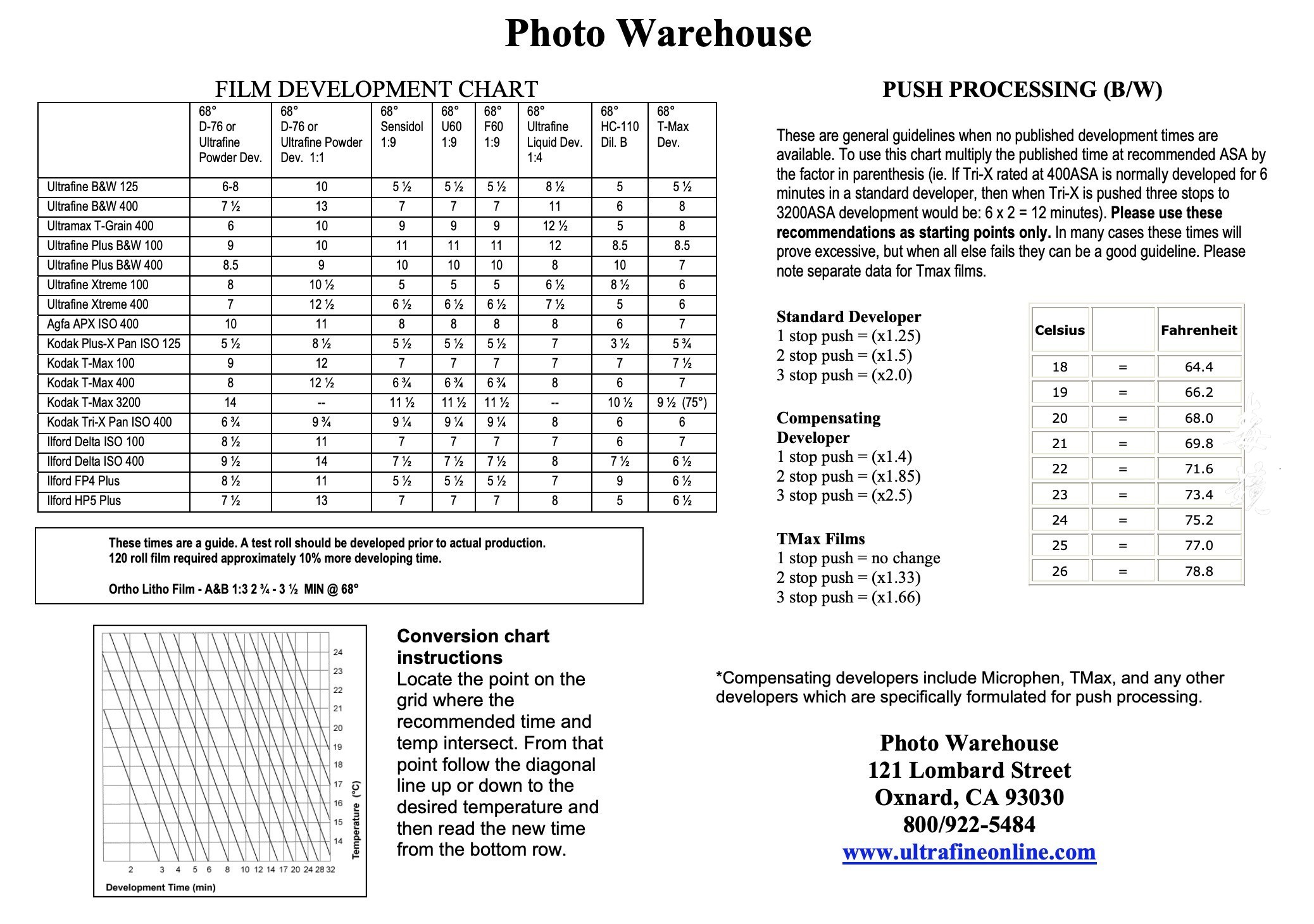 68° D-76 or Ultrafine Powder Dev. 68° D-76 or Ultrafine Powder Dev. 1:1 68° Sensidol 1:9 68° U60 1:9 68° F60 1:9 68° Ultrafine Liquid Dev. 1:4 68° HC-110 Dil. B 68°