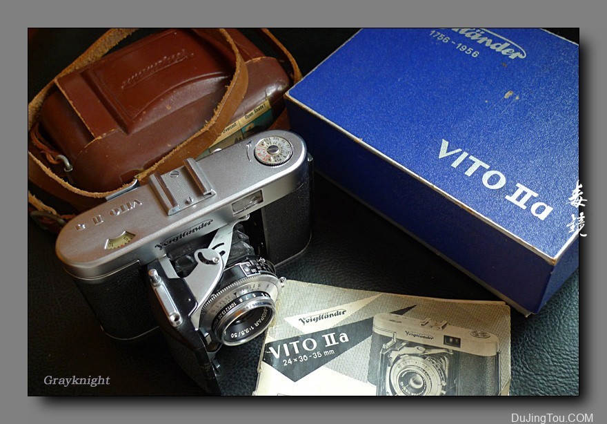 当时所有福伦达相机的初始包装是在蓝盒子外面还套有一个马粪纸盒子,在运输中起保护作用,当然现在保存下来的此种外盒已寥寥无几,IIa的皮套也是这一系列中最为精美的,包上了镀铬边
