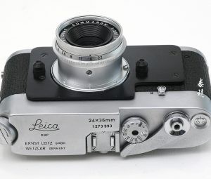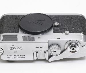带有自拍功能的镀铬Leica M2,并有倒带拨杆。