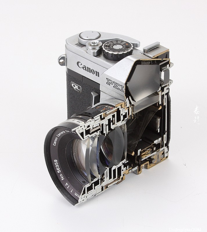 就像测距仪相机一样,它没有坚固的镜面来保护百叶窗窗帘,使其免受像放大镜一样被聚焦在它们上面的太阳所刺伤。这是第一款通过镜头测光的佳能相机。